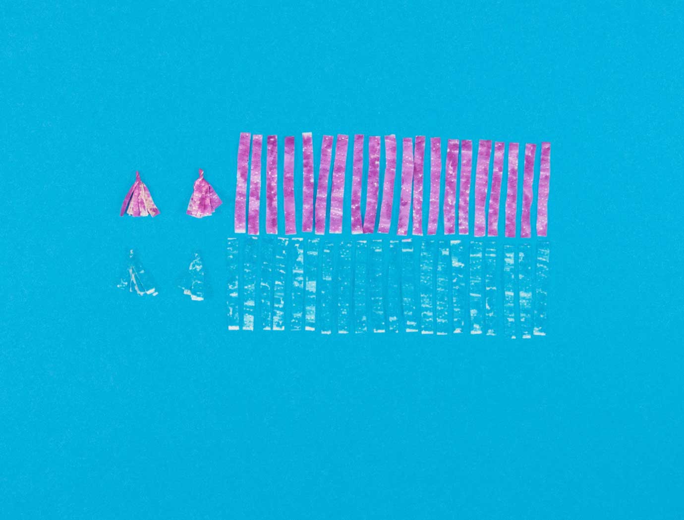 Now to make the paper fringing. Measure and cut the kitchen paper into 3cm-wide strips. Make 2cm-long slits along each strip.